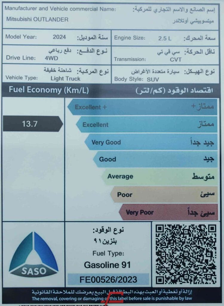 نوع السيارة : ميتسوبيشي اوتلاندر