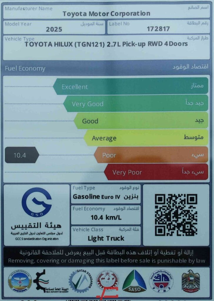نوع السيارة : تويوتا هايلوكس