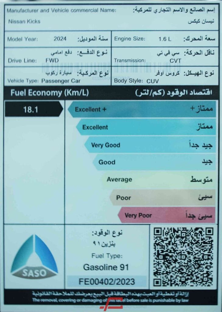 علما بأن السيارة جديدة ( غير مستخدمة )